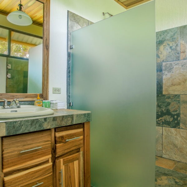 • Spacious bathroom with hot water shower