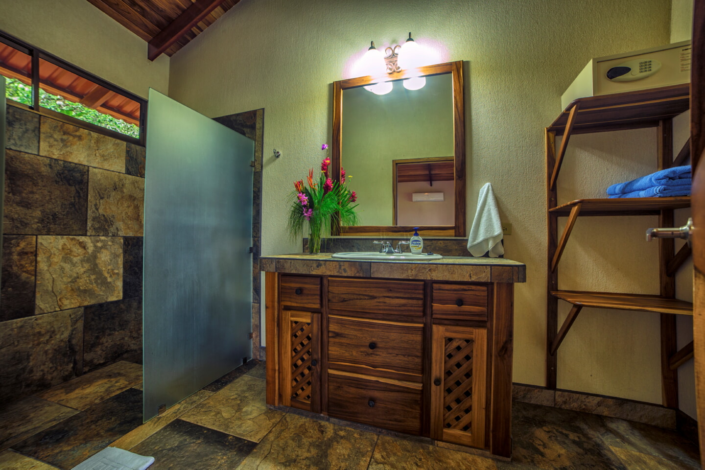 • Spacious bathroom with hot water shower